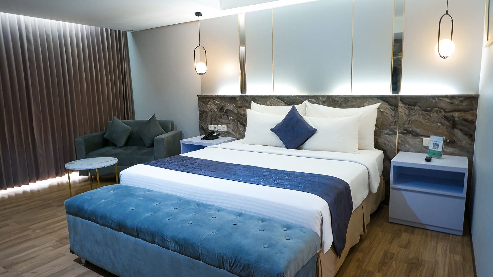 Experience a more tranquil stay with a luxurious King Bed and captivating city views. Offering 36.5 sqm of refined space and a 24 sqm private balcony, this suite invites you to unwind in comfort and serenity. Enjoy Mojokerto’s skyline, stay connected with free Wi-Fi, and take advantage of complimentary Gym Centre access, direct access to Sunrise Mall, and a refreshing Welcome Drink upon arrival.